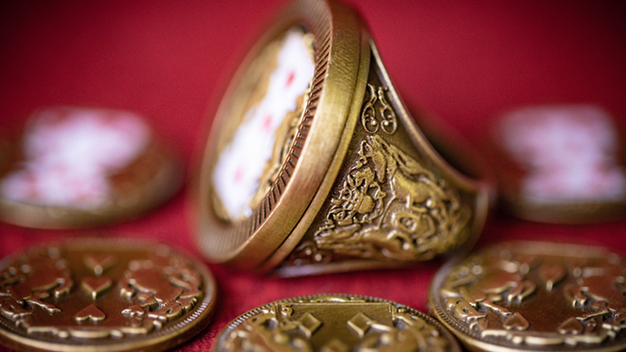 Together, The Noble One Ring and The Noble 52 Deck, are used to create some of the most powerful card tricks imaginable. When the ring is placed onto a spectators finger the recipient is empowered with the magic of the 52 and are able to change, vanish and manipulate cards at will. Finally.... for a remarkable climax, the ring on the spectators' finger morphs into the design of a chosen card. The reactions when this happens are legendary!