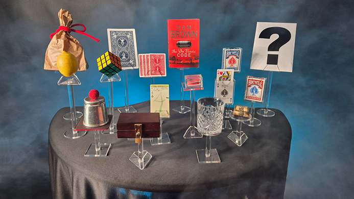 Whether you are using a deck of cards, envelopes, fruit, Rubik's Cube, boxes, a glass and any number of different items, the Universal Display System will help create a professional look for you and your performance.