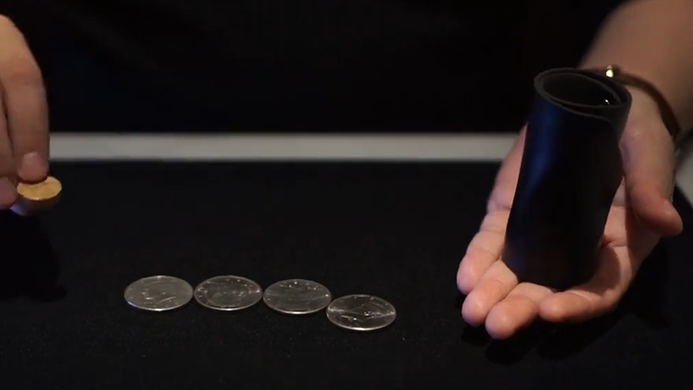 Instead of a cylinder, Vega is a coin wallet that can be transform to a cylinder, creating a new premise to use a cylinder in a routine, especially for table hopping or any walk around magic.