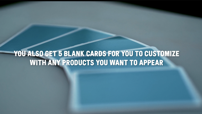 - 5 Blank carss, so you can easily add your own products and items to appear inside