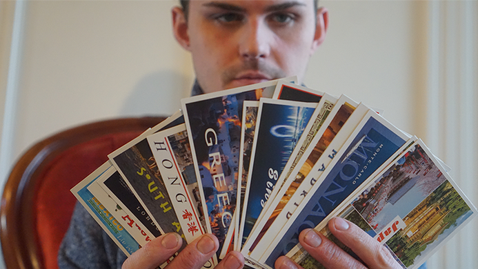 Philip Ryan has been performing his postcard routine for many years. In this version, you show the spectator a list of 30 countries -they have a COMPLETELY FREE CHOICE of any country. You then fan the postcards showing that their choice is the ONLY ONE FACE DOWN in the packet. The spectator can pull out the card and they will see it is theirs. The great thing about this is that they can change their mind at any time and their final choice will be the one face down amongst the face up postcards.