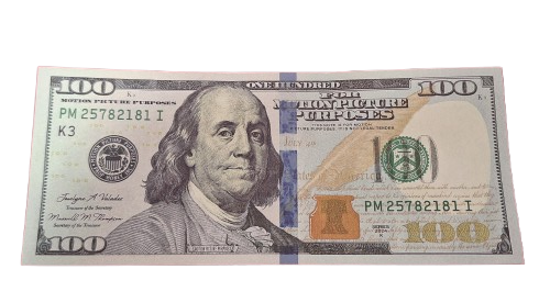 This is a bundle of ten fake 100 dollar bills - They are New Style which means it looks like a FRESH bill out of the bank register. These are great for effects needing dollar bills that you need to either destroy or use as a bet.