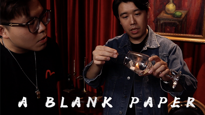 Magician display a piece of blank paper, and have audience examine it. Magician ask the spectator to think of a random card, and when magician burn the blank paper, the card will appear on the ash of the paper.