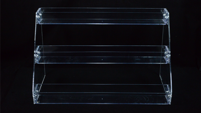 The Carat XCR3 is made of clear 3mm acrylic to provide a strong, sturdy structure while still being lightweight. The XCR3's design is based off of multi-tiered acrylic nail polish racks, but has been modified so that each tier is spaced far enough apart from each other to allow for clear, unobstructed views of all the decks being displayed.