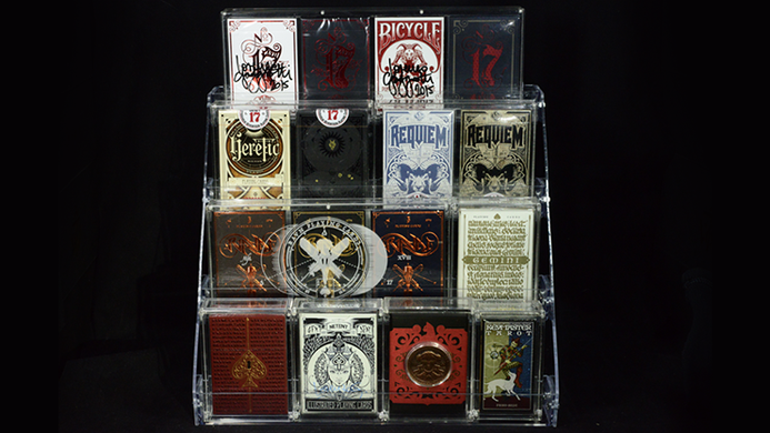 The Carat XCR4 4-Tier Case Rack was created to display decks of playing cards, either by themselves or in Carat Cases, in four tiered rows to take advantage of unused vertical space.