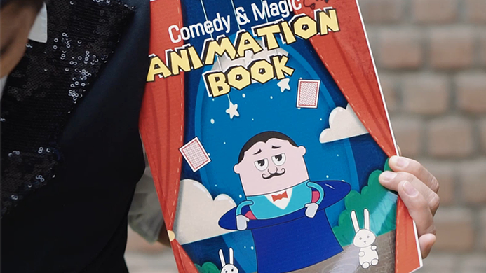 He shows the book and turns pages after pages and the magician begins to act by taking a rabbit out of his hat and with the help of magic words he will take more rabbits out of the hat, ideal for magical narration.