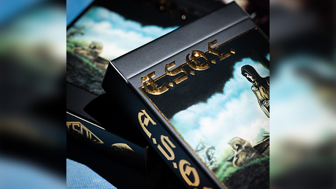 The tuck box features spot uv gloss and bold gold foil richly embossed to truly covet the epic cover art. This will stand out on any shelf and impress anybody you play a game of poker with.