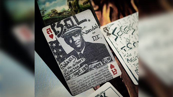 This official deck of cards is completely custom. Every card is meticulously curated and designed to pay tribute to a bygone era where flyers were the advertisement of choice to spread the word. This deck features flyers from the archives of legendary skateboard artist Chicken Deck who collected them from 1979-1983 around Orange County California.