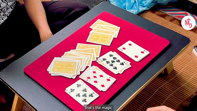 Imagine a magician asking a spectator to select any four of a kind. Then the magician splits the deck into some piles of card. The spectator chooses which pile to put their 4 aces on top and surprisingly, the magician can figure out exactly how many cards do not have the aces on top.