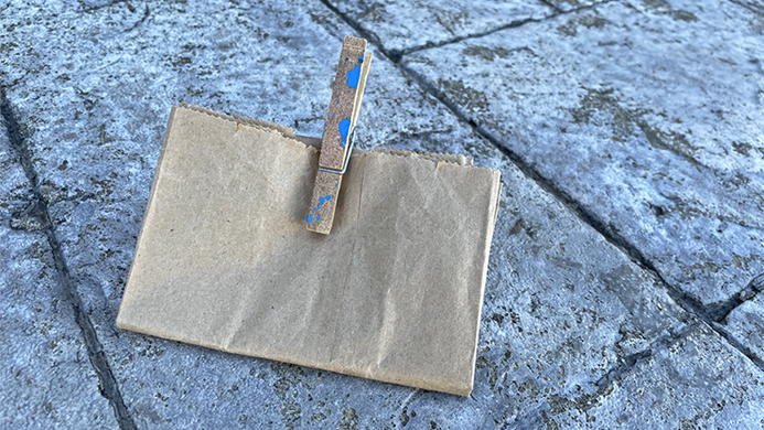 Find a spectator's card with a clothespin from within a paper bag!