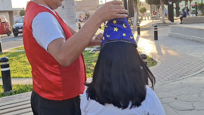 KUMPU is a professional, audience-tested magic prop designed for children's entertainers and family performers. With a simple turn from the inside, the hat visually changes into six different themed hats, one after another, right in front of the audience.