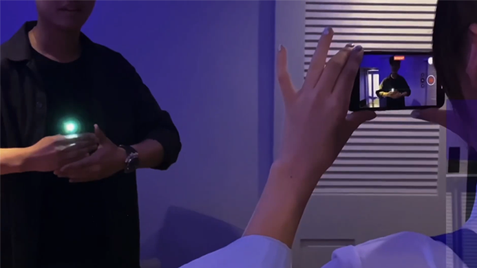 You ask to borrow a spectator's phone. You turn the flashlight on, and hold it clearly in your hands. You give them your phone so they can film what is about to happen. You hold their phone, they are filming what happens on your phone. In a flash, their phone vanishes from your hands. Where could it be? It is now in THEIR hands and THEY have been filming the entire thing on THEIR OWN PHONE!
