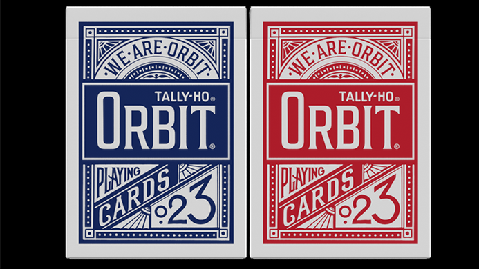 The deck is designed by Daniel Schneider and features Bicycle thin crushed stock for that broken-in feeling! The card faces include the classic Tally-Ho Jokers and a custom Tally-Ho Orbit astronaut Joker, custom court card faces, a double backer card, and extra 8S card.