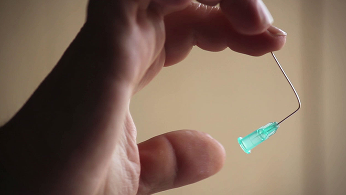 In addition to this basic effect, you'll also learn a bunch of brilliant ideas for applying the same principle to other sharp objects: nails, surgical needles, safety pins, etc. 30 minutes of explanatory video concluding with a bonus of one of the most visual psychic metal bends you've ever seen.
