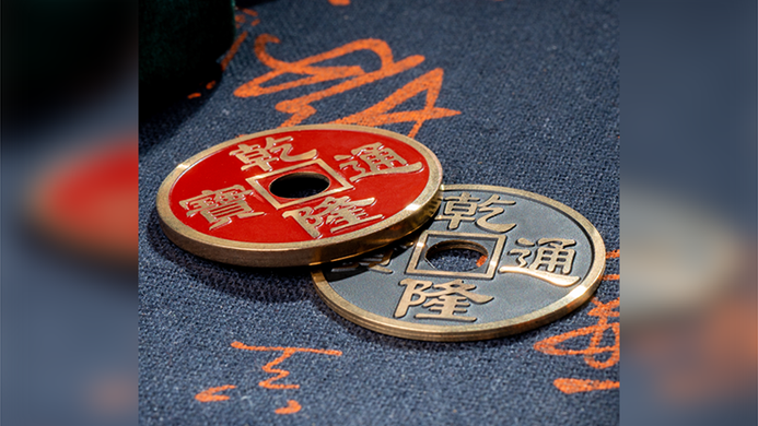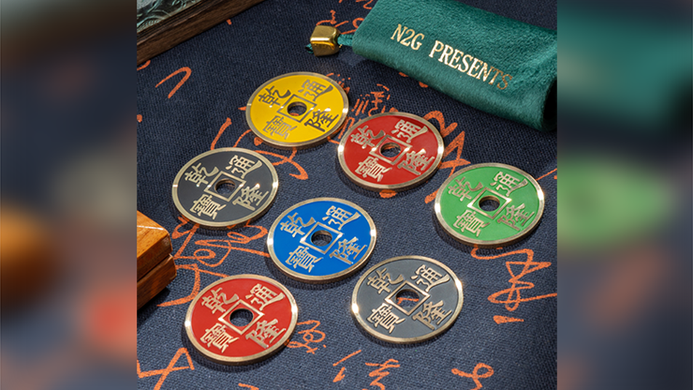 You show five ancient Chinese coins of different colors. Their colors are one of the rainbow, except the black coin. You let the audience hold these five coins, and the black coin disappears in the hands of the audience and appear wherever you like.