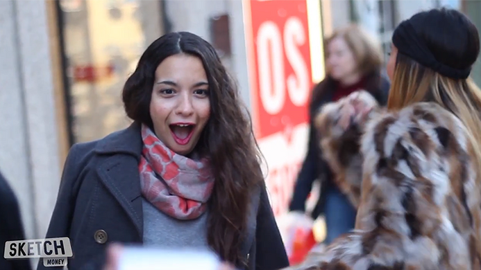 Suddenly the drawing VISIBLY jumps out of the pad, transforming into real money!