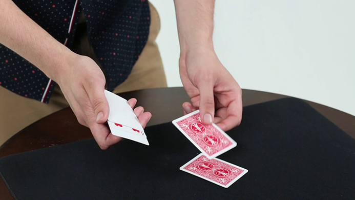 1st Phase: One at a time, the ink is removed off of 4 playing cards, and impossibly appears on 4 blank cards that were in full view on the table the entire time.