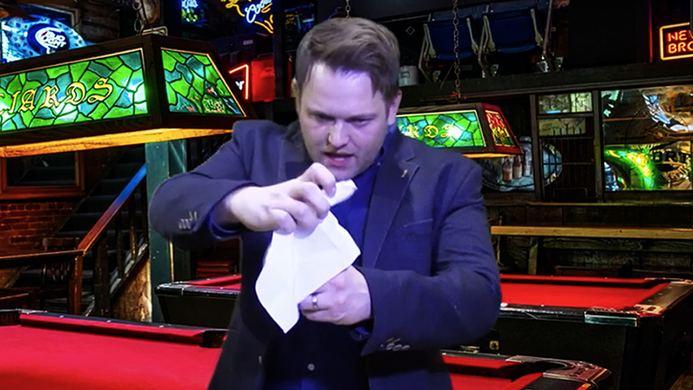First, you impress your spectators by transforming a napkin into an 8 Ball.