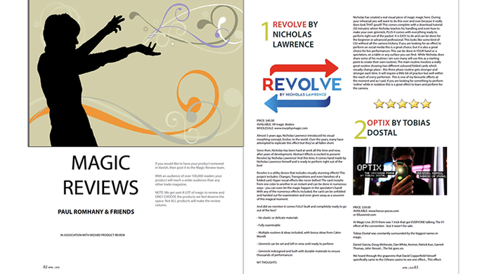 Reviews - Revolve by Nicholas Lawrence, Optix by Tobias Dostal, Tell The Truth by Benjaman Budzak, Crazy Spots by Murphy's Magic, Darkwaves by Adam Cooper, Perform All the stuff to think about by Tim Hanning