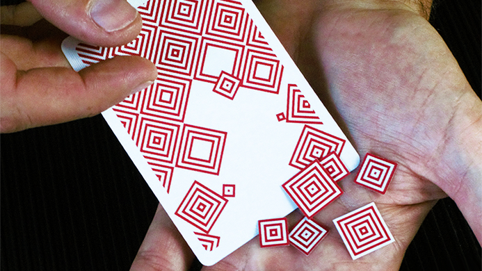An instant, visual treat that shows the squares from the back explode off into the real world. Spare card included so you can cut out squares from the back design. Can be used with the back animation of the Optricks Red Deck to create a startling moment.