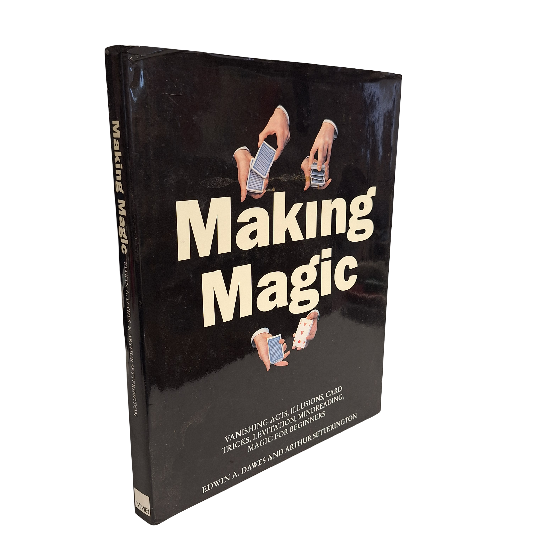 Among the various tricks included in Making Magic The Black Bag Mystery, The Indian Basket, The Bewildering Boomerangs, The Slip-Away Knot, The Growing Wand, Find the Lady, Ribbon Restoration, Magical Magnetism, Card Stab, The Turnover Revelation, The Vanishing Rabbit, A Royal Mystery, Just a Thought, Extraordinary Aces, Dual Discovery, The Q Mystery, Mindreading, and The Space Age Mystery.