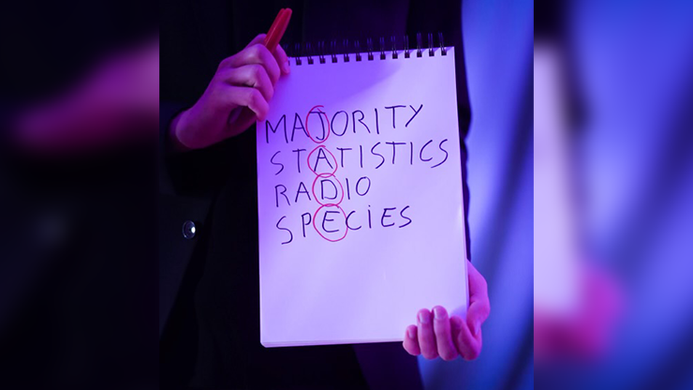 Imagine this: A spectator, Jade, rolls an imaginary die, anddecides that the result is 3. Then, with her phone, she consultsany Wikipedia article out of millions, for example The Beatles.She sees that there are links to other pages, in this caseLiverpool, Rock, John Lennon, Album, etc... Then, she clickson a link to navigate randomly from page to page; all herchoices are noted down gradually.