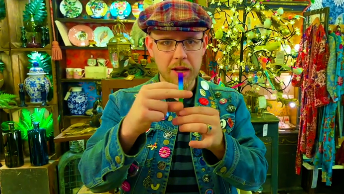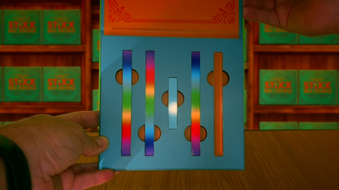 But STIXX is more than just routines. Eric has redesigned the prop, eliminating the awkward spelling color selection - now the color selection looks completely fair! Furthermore, STIXX is the most comprehensive set of Hot Rods ever created, featuring Eric's transparent rod, which he uses to visually vanish the colors from the Hot Rod before making the rod disappear completely.