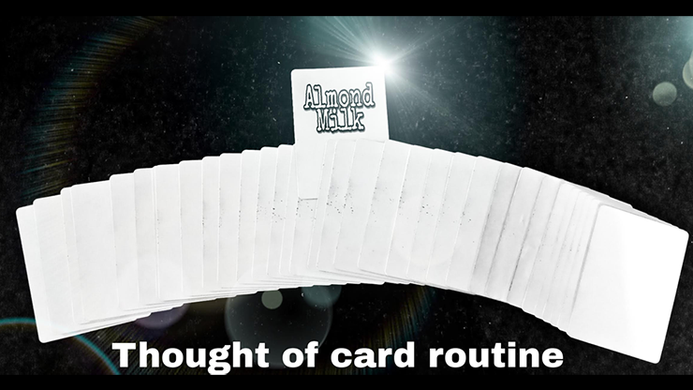 Almond Milk is an effect that lets the spectator freely select a card "mentally" . Once the card is selected, the magician then goes on to reveal that the pack of cards that had been sitting in front of them in full view the entire time, on spreading, has one card face up inside of it. There is one card face up inside an entire face down pack of cards , that is none other than the spectator's thought of card.
