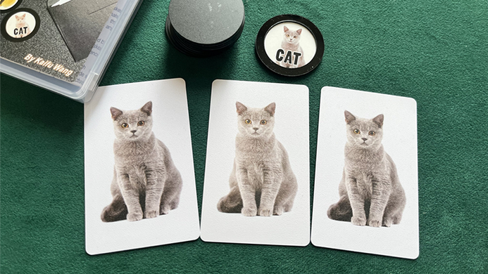 You display a series of chips printed with various pictures, allowing the audience to randomly choose one of them. The audience chose a picture of the cat. Then you present the predicted results that were presented early in the morning - three cards printed with English letters, but the letters cannot be spelled as Cat. When the audience thinks your performance has failed, you place the three cards together, and the letters on the cards form a simple stroke of the cat. At this point, the audience still had some doubts, so you flipped over three cards, and the back of the cards were all colored pictures of cats.
