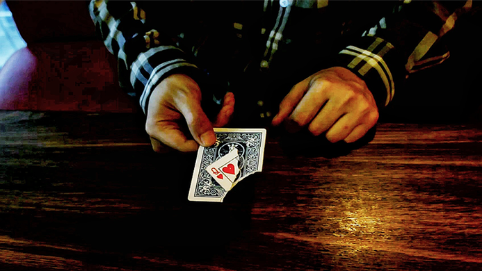 You take the corner from the card, put it on the card, and with one movement of your hand the card is restored!