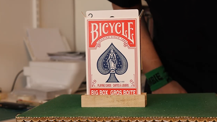 The jumbo deck, card box and wooden stand are all examinable before and after the rise.