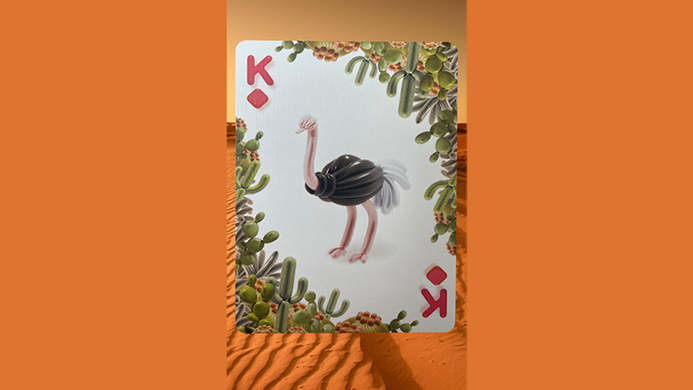 Each card is a testament to the playful and varied life in the desert, depicted as stunning balloon animals. These cards are not just visually appealing; they are crafted for performance with a superior air-cushion finish by the United States Playing Card Company (USPCC).