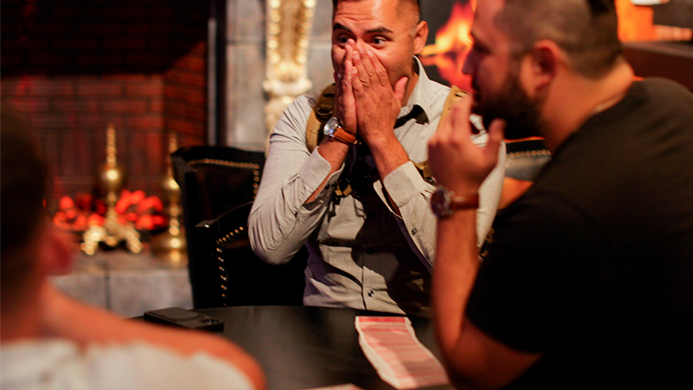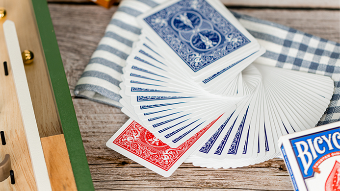 You begin by asking your spectator to IMAGINE a deck of playing cards. After shuffling the imaginary deck in their mind, you ask the spectator to think of a card. Once the spectator locks a card in mind you then point out a deck that has been sitting on the table the entire time and never touched by the magician. You ask the spectator to open up the deck, the magician still has no knowledge of what the card is, and asking the spectator to spread through the deck and find their thought of card. The card is removed from the deck and the deck is then turned over to show clearly that all the cards in the deck are red except for one card. The spectator turns over the card that they merely thought of and it is the only card with a blue back!