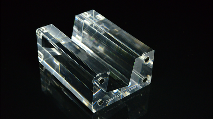 The Carat XDD is made of a solid piece of 3cm thick acrylic with dimensions 6.9cm x 5.0cm x 3.0cm and has a slanted groove 20cm wide to allow for most decks to sit comfortably in it. On each side, there are four neodymium magnets to allow for multiple displays to be connected seamlessly side-by-side. It comes with rubber pads that can be adhered on the bottom to prevent sliding on as well as scratching of surfaces.