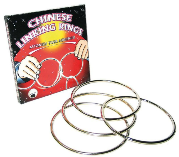 The Chinese rings for close-up magic. Four rings are chained and freed right in front of the spectators' eyes.