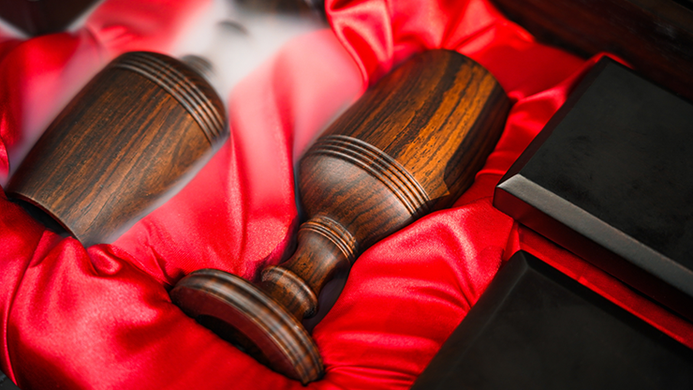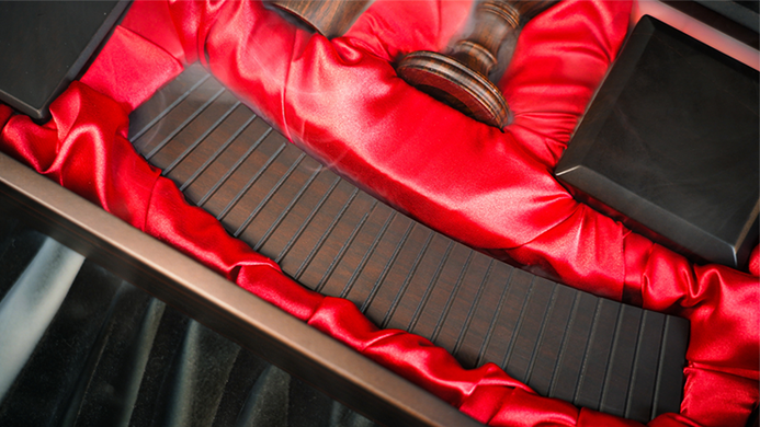 Made with Cambodian rosewood with a black ebony finish, it emits a timeless sophistication, while the striking red fabric lining adds a sense of attraction.