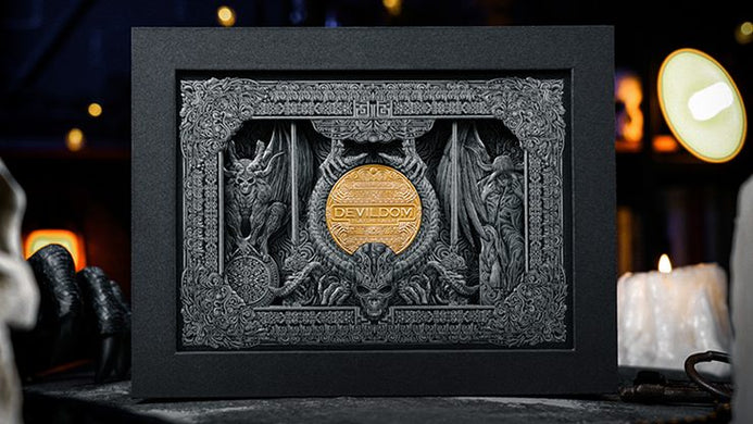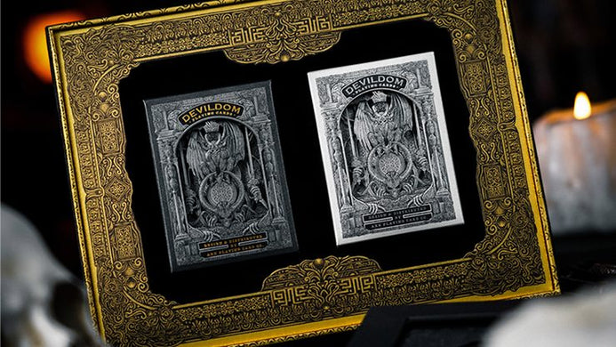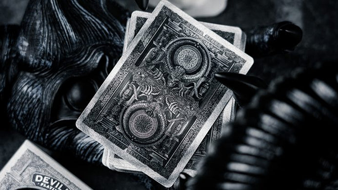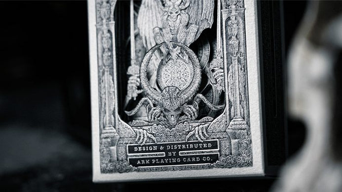 This luxurious and exquisite high-end playing card gift box set is specifically designed for a demon-themed poker deck. The gift box features black and dark silver as the main color scheme, creating a mysterious and noble texture. The front showcases a multi-layer embossed artwork composed of four layers, each utilizing full panel embossing and hot foil stamping techniques. The result is a visually stunning and three-dimensional image.