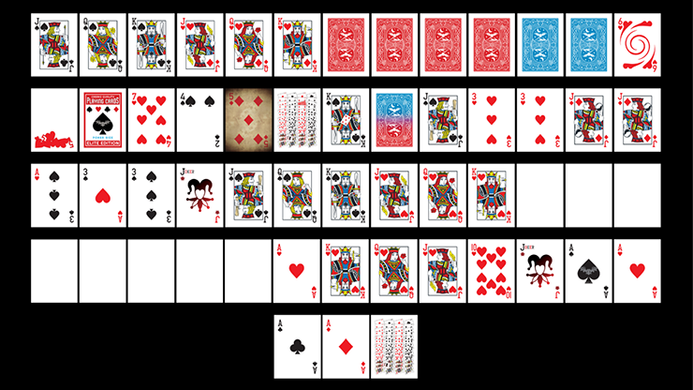 Mis-Index - JS / JC Mis-Index - QS / QC Mis-Index - KS / KC Mis-Index - JH / JD Mis-Index - QH / QD Mis-Index - KH / KD Double Backer - Red / Red Double Backer - Red / Red Double Backer - Red / Blue Double Backer - Red / Blue Double Backer - Blue / Blue Double Backer - Blue / Blue Swirled Card - 6H Fallen Pips - 5H Box Face - Joker Short Long Card - 4 / 7 Hearts Short Long Card - 2 / 4 Spades Vintage Prediction Card - 5D 52 on 1 + 3 Hearts Prediction King of Spades Revealing 5D Split Back Horizontal - Red / Blue - Red Split Back Vertical - Red / Blue - JS Double Face - 3H / KS Double Face - 3H / KS Double Face - JD / 2C Double Face - JD / 2C 3 of Spades W' Ace of Hearts Pip - Blue Ace of Hearts W' 3 of Spades Pip - Blue Extra 3 of Spades - Blue Fiedler's Flier Style Card Double Face - JS / JC Double Face - QS / QC Double Face - KS / KC Double Face - JH / JD Double Face - QH / QD Double Face - KH / KD Red Back - Blank Face Red Back - Blank Face Red Back - Blank Face Red Back - Blank Face Blue Back - Blank Face Blue Back - Blank Face Blue Back - Blank Face Blue Back - Blank Face D' Face - Ace Hearts - Ace Hearts D' Face - King Hearts - King Hearts D' Face - Queen Hearts - Queen Hearts D' Face - Jack Hearts - Jack Hearts D' Face - 10 Hearts - 10 Hearts D' Face - Joker / Joker D' Face - Ace Spades / 5 Spades D' Face - Ace Hearts / 3 Hearts D' Face - Ace Clubs / 10 Clubs D' Face - Ace Diamonds / 8 Diamonds 52 on 1 Card / 2 Hearts
