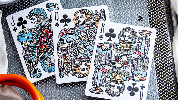 • 56 poker-sized cards, including two Jokers featuring an astronaut-accordionist, one ad card, and one reveal card.