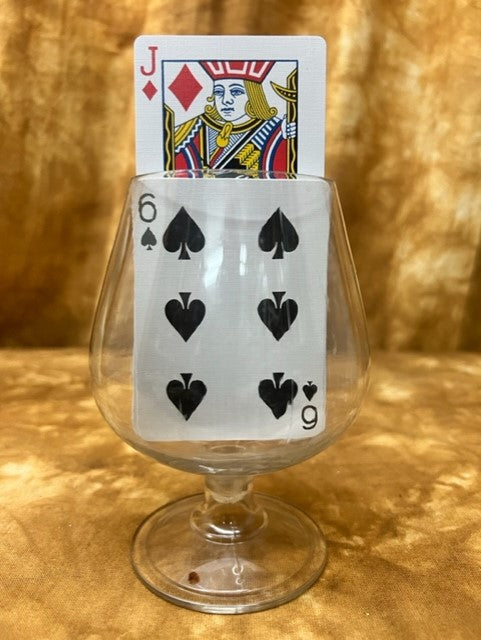 You invite a spectator to choose a card and it is then lost back inside the deck. From there you instruct the audience that the spirits will actually be performing the magic today - not the magician. You place the deck ideally inside a clear class and step away from the glass and the deck and ask the spectator and audience to focus their energy on the card deck several feet away standing in a glass.