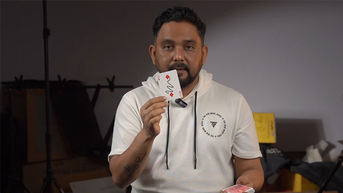 A spectator selects and signs a card. It's placed into the deck-lost among the chaos. Then, the game begins.
