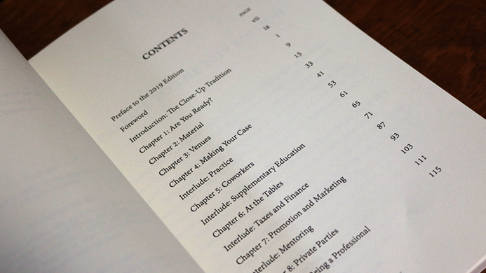 This Dover edition, first published in 2019, is a revised and updated republication of Blood, Sweat, and Pinky Breaks: A Practical Guide to Making a Living with Close-up Magic, self-published by Magnus in 1999. This edition adds a new preface, introduction, and other chapters.