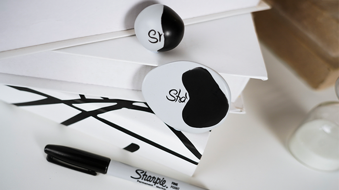 At the end of the performance, you pick up the Sharpie and casually roll it between your palms, and it surprisingly turns into a ball. You then pick up the ball and smack it on the table, and the ball just now turns into a splat. Finally, you stretch it all the way back to a regular Sharpie.