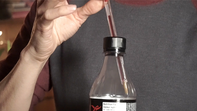 You then take the spec's rolled-up bill or a normal straw or pen and visibly push it through the cap and into the sealed bottle.