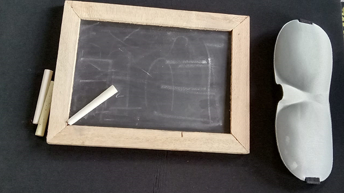 Effect: 3 cards on which are written 3 different personal traits of human beings are shown. They are then handed over to a spectator & thoroughly mixed by him. Next the spectator is instructed to form a face down row on the table in any manner so that no one knows the location of any particular card. The mentalist now hands over a writing slate to the spectator & asks him to write down one of these characteristics on the slate. Saying so, the mentalist puts on a blindfold. The spectator writes down one of these traits on the slate & places the slate face down on the table. The performer's blindfold is now removed & he instructs the spectator to point to any of the 3 face down cards on the table. The performer's selected card & the slate are now both turned face up & the traits written on them are found to be exact matches!