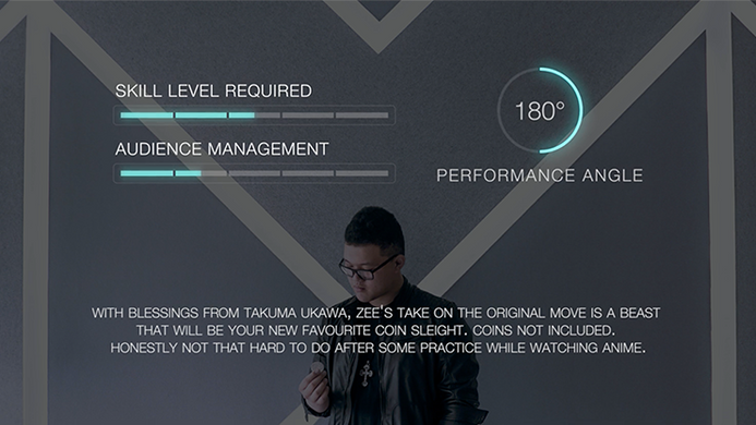 Not only does Zee go through various tips and techniques to help you improve your coin sleight, he also includes 8 high-impact routines from his very own personal arsenal, which of course can be altered to suit your personal style!