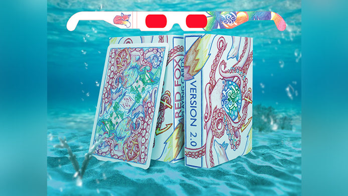 Version 2.0 - The underwater adventure deck! Red decoder glasses are included with this marked deck while supplies last only. The unique to Red Fox Playing Cards marking system uses these glasses to help train your eye where to look and how to see the markings. Once trained, the glasses are no longer needed to see the markings. Any Red Decoder glasses will work.