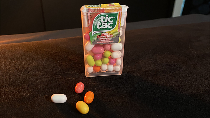 You present the spectator with a box of very popular colored candies (TIC TACxc2xae), and pour some of them into his hand. In a moment, you are going to offer him a unique experience.