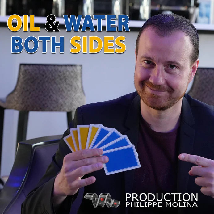 The concept of "Oil and Water" is one of the most baffling effects in the art of magic. Rene Levand made his reputation just with this one effect alone which was titled, "It can't be done any slower." It appears that Phillipe Molina's is ambitiously achieving the same attempt with his version of this AMAZING effect: