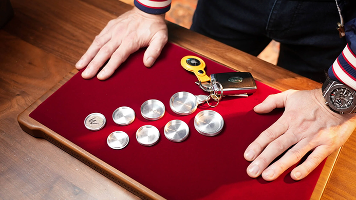 During your performance, you casually place your keys on the table, fully visible to your spectators. You borrow a ring or coin-then, in an instant, it vanishes, perhaps in a flash of fire. Drawing attention back to your keys, which have remained untouched, you point to The Vault.